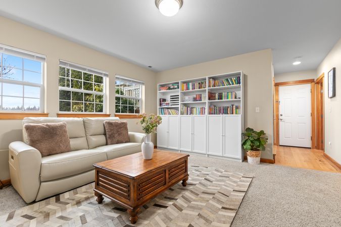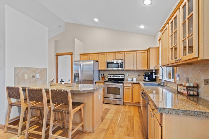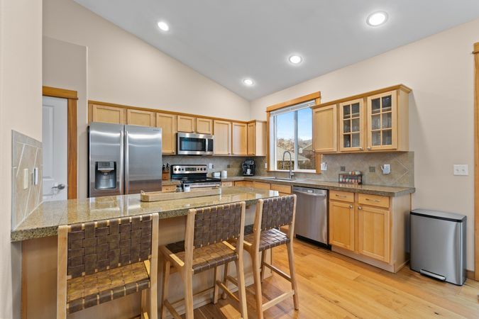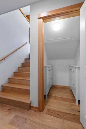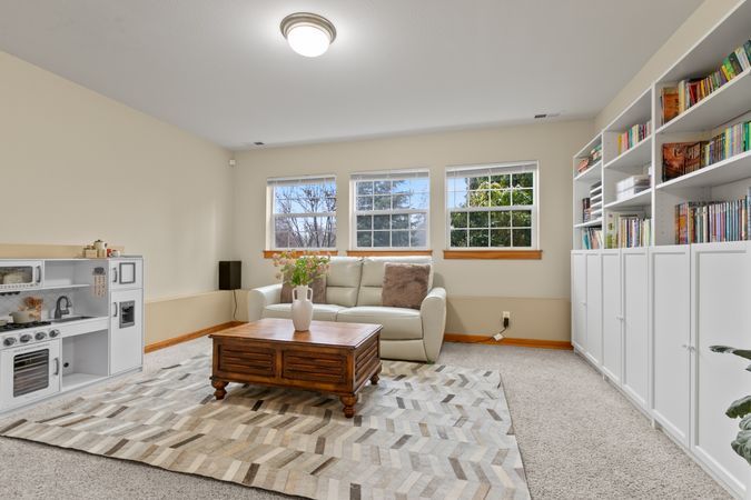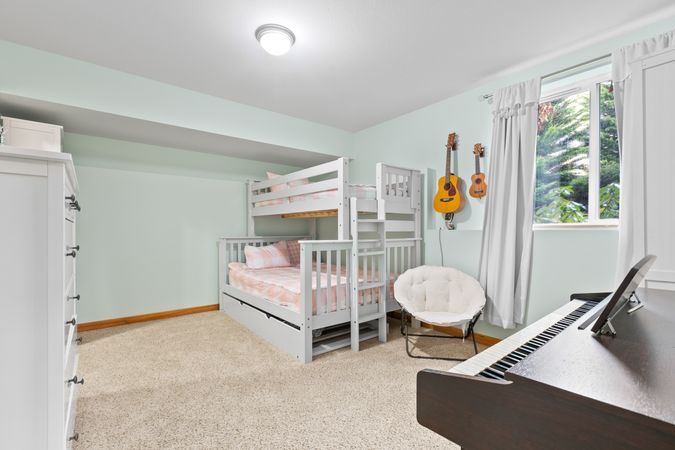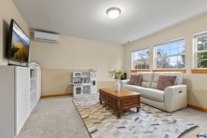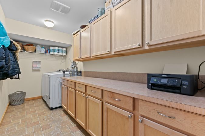 The lower level provides separate living area, a private bedroom, and a full bathroom, making it perfect for guests or multi-generational living. The laundry area is equipped with expansive counter space and abundant storage, as well as a large shoe closet for convenience and organization.